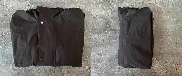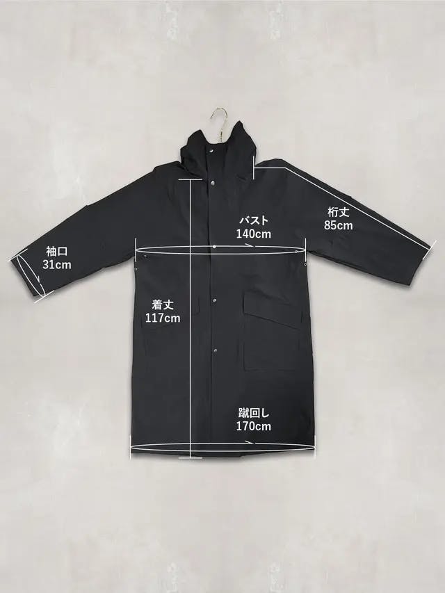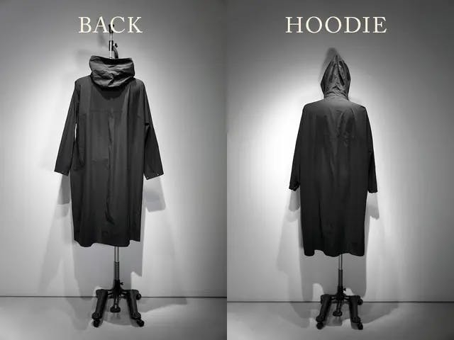 - 尚、大型の台風が近づく8月にコートを着て体感して実験したところ、傘を差さずとも雨風の侵入を防いでいました。