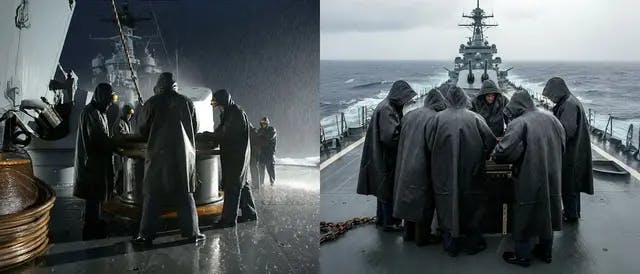 - 1970年代にアメリカ海軍の作業服として、船上や海上での作業時に使用されていました。当時の軍事規格や気象条件に基づいて開発されました。