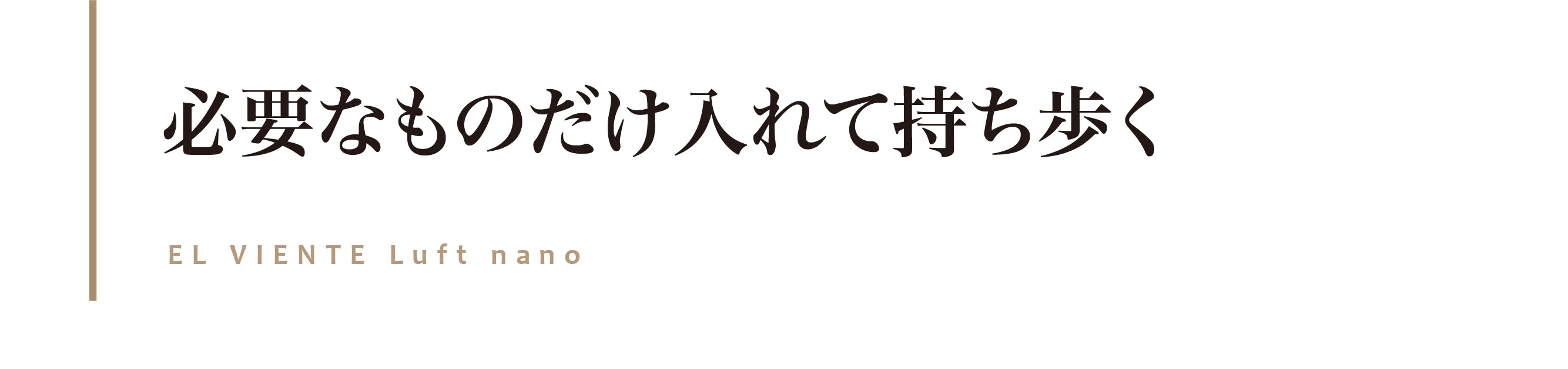 - 「EL VIENTE Luft nano」は必要十分な機能と、持つ場所、持つ人を選ばないジェンダーレスなデザイン。