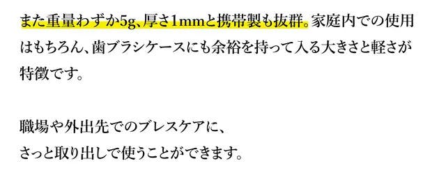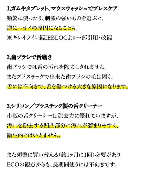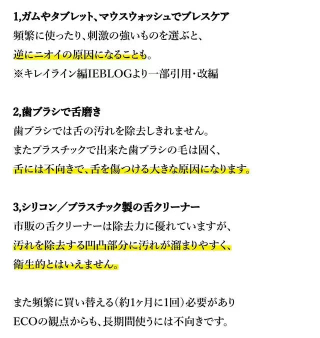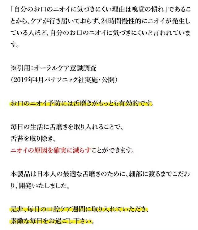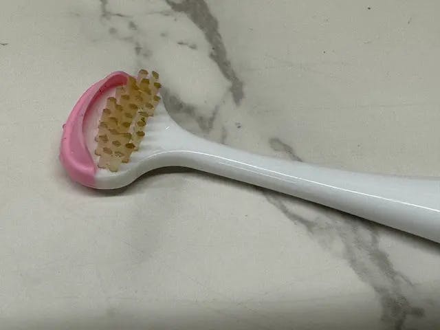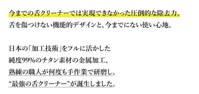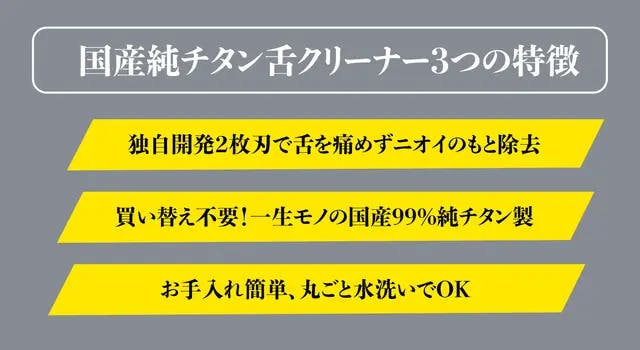 A:本製品を舌の上に置き、優しく2−5回ほど上下させて下さい。舌みがきは頻繁に行っても舌を傷つけるため、多くても1日1回ほどの頻度を推奨いたします。 毎日ご使用いただくと、少しずつ汚れが落ちますので根気よく続けてください。